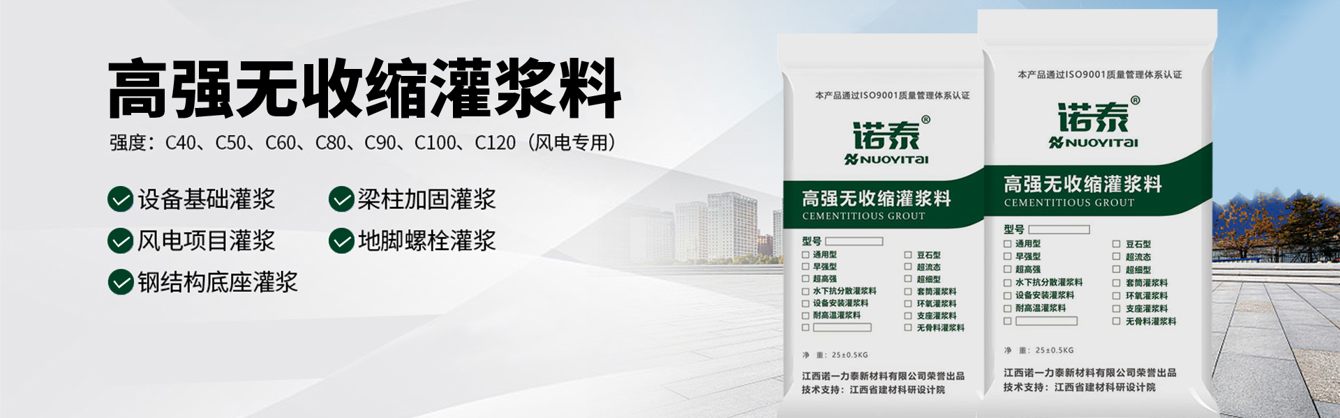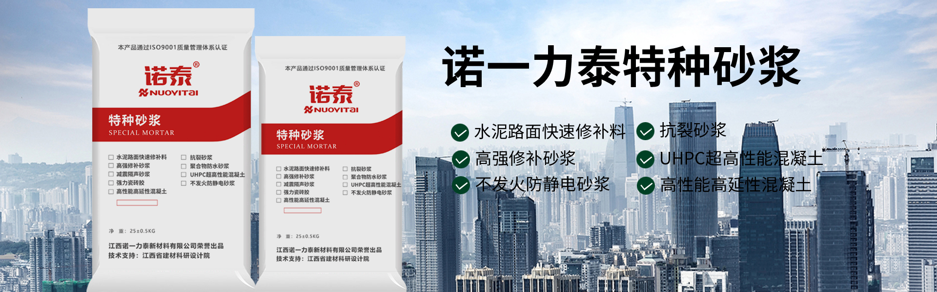 江西諾一力泰新材料有限公司位于江西宜春奉新縣,是專業從事灌漿料、水泥路面修補砂漿、抗裂砂漿、防水砂漿、保溫砂漿、隔聲砂漿粘結砂漿等砂漿系列產品生產銷售的廠家。